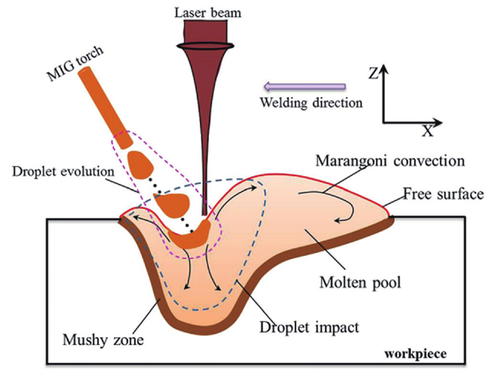 在汽车车身焊接过程中,激光-电弧复合焊接相比单激光焊接具有间隙容忍度大的优势,然而激光-电弧复合焊接需综合考虑激光与电弧的相对位置、激光焊接参数、电弧参数等因素。激光-电弧焊接过程中的传热传质行为复杂,尤其是异种材料焊接的能量调控及IMC厚度和组织调控的机理尚不明确,需要进一步加强研究。