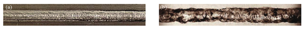 在汽车车身激光填丝焊工艺中,送丝速度与激光焊接工艺参数的匹配程度决定了焊接质量。徐景波研究了1.5 mm厚的车用7075高强铝合金的激光填丝焊接工艺。研究表明,当送丝速度加快时,接头裂纹数量减少,但过快的送丝速度不利于表面成形。薄春雨针对汽车车身前纵梁激光填丝焊接过程中出现的各类缺陷,提出了相应的优化方案:对于飞溅问题,需优化激光光斑尺寸;对于焊缝背部凹陷问题,需优化激光功率和光丝间距并控制板材间隙;对于气孔缺陷,应设计上下板材最佳间隙。张林阳等提出了顶盖、侧围等汽车车身铝合金覆盖件激光填丝焊接的质量控制方法:对于焊缝表面不平滑缺陷,可通过改善功率、送丝速度和焊接速度之间的匹配性来获得平整焊缝;对于气孔缺陷,可以通过增大保护气流量来保护焊缝熔池;对于表面塌陷问题,可以通过增大光斑直径,提升系统对间隙的容忍度,进而进行优化。韩荧等针对轿车座椅骨架开展了激光填丝焊工艺研究。研究发现,不同送丝速度下的熔滴过渡形式不同,当熔滴过渡形式为液桥过渡形式时,焊接稳定性较好,咬边和下塌等缺陷减少。