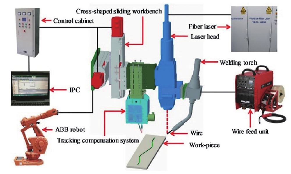 汽车车身激光焊接工艺对焊缝的识别和定位有较高的要求,焊缝的快速准确识别和定位是保证智能化焊接过程的必要技术手段。Lei等[56]开发了一套用在激光焊接过程中的焊缝检测-补偿-跟踪系统,如图12所示。汽车车身激光焊接过程中的焊缝跟踪主要是依靠传感器对待焊汽车车身部件的焊缝进行实时感知,确定焊缝位置并反馈至焊接机器人运动控制系统,从而及时调整焊接机器人的姿态及运动路径。因此,焊缝跟踪的精度和实时性对焊接质量至关重要。焊缝跟踪技术主要包括焊前焊缝检测和焊中焊缝实时跟踪两个环节,两个环节主要依靠视觉传感器对焊缝进行识别和定位。焊前焊缝检测的主要目的是为焊接机器人提供初始的焊接运动路径;焊中焊缝实时跟踪的目的是准确识别焊缝位置,动态调整机器人的运动轨迹。焊缝跟踪技术适用于各种汽车车身激光焊接工艺,具有一定的通用性。基于视觉传感技术(尤其是激光视觉传感技术)的焊缝跟踪方法具有对比度高、精度高、实时性好、无接触等优点,得到了广泛研究和应用。