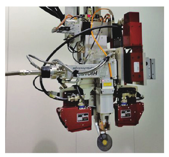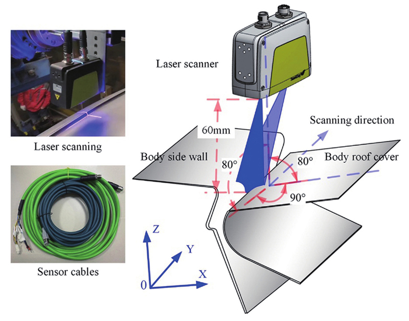 在汽车车身激光焊接过程中,通过对焊缝的实时检测,可以动态调整焊接机器人的运动轨迹,减小焊缝定位误差,提升焊接质量。Servo-Robot公司针对汽车白车身激光钎焊工艺对工件装配精度要求高的特点,研发了激光视觉系统,如图13所示。该系统中的追踪相机QUANTA能够对包括对接、搭接、角接、卷接等形式的焊缝进行扫描跟踪,该系统已成功应用于顶盖和侧围的搭接焊缝跟踪。德国Scansonic公司研发了RLW-A系统,该系统集成了光学焊缝跟踪系统和高频振镜,可实现激光焊接和焊缝跟踪的同时运行,能识别并跟踪搭接式角焊缝、叠加式穿透焊焊缝、T形接头等。该系统的应用领域包括车门、顶盖、侧围、车身底板等车身部件的激光焊接。华工法利莱切焊系统工程有限公司运用三维激光视觉系统控制汽车白车身车顶的激光焊接焊缝精度。该系统是以计算机、信息处理、图像处理、激光视觉为核心的先进系统,可在焊前对焊缝进行跟踪及预处理,通过调整焊接机器人的运动轨迹,弥补了焊接误差,大幅提高了焊接质量,提升了生产效率。